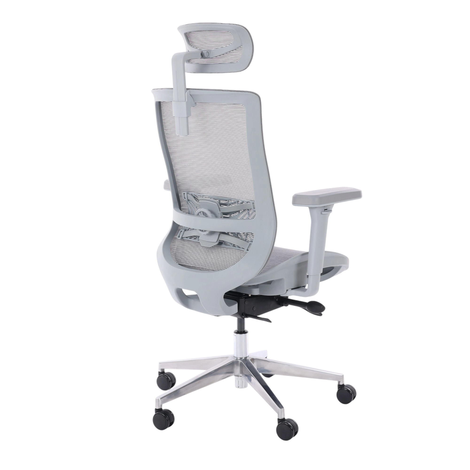 O encosto da Cadeira Comfy Aero também é revestido com a mesma tela mesh alemã, o que garante a mesma respirabilidade e durabilidade. Além disso, o encosto é ajustável, permitindo uma reclinação suave e um suporte que acompanha o movimento natural do corpo, promovendo uma postura saudável mesmo durante momentos de relaxamento.