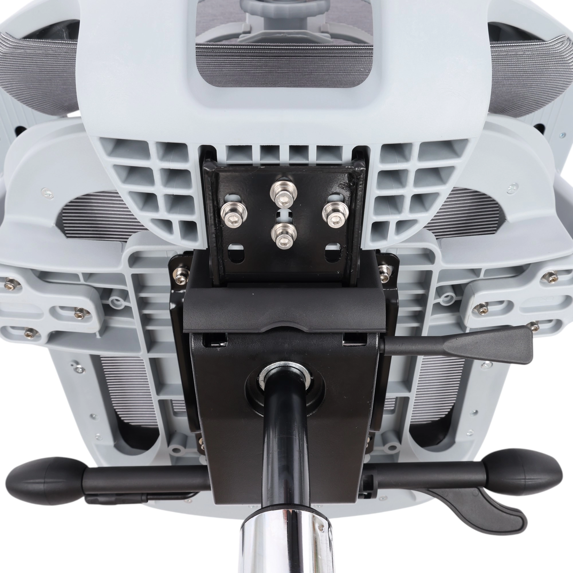 Possui mecanismo exclusivo de extrema robustez com Sistema de Balanço de Assento Ativo Exclusivo Liberado por Alavanca;