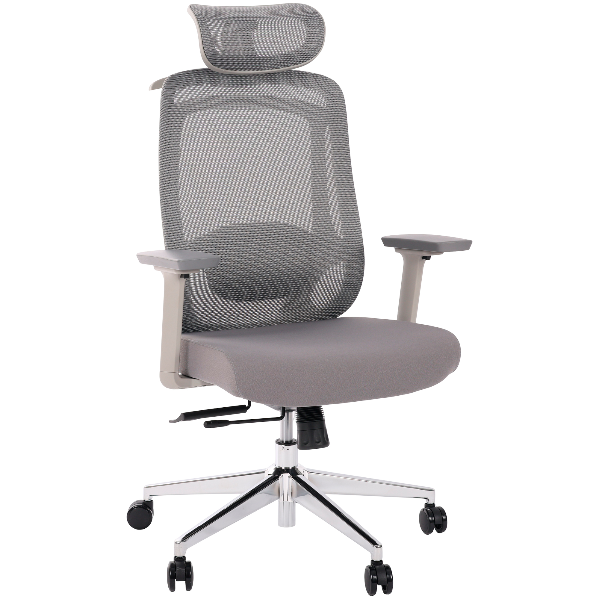 Cadeira de Escritório Comfy Aurora Cinza Mesh Cinza, Braço 3D, Assento Deslizante e Relax