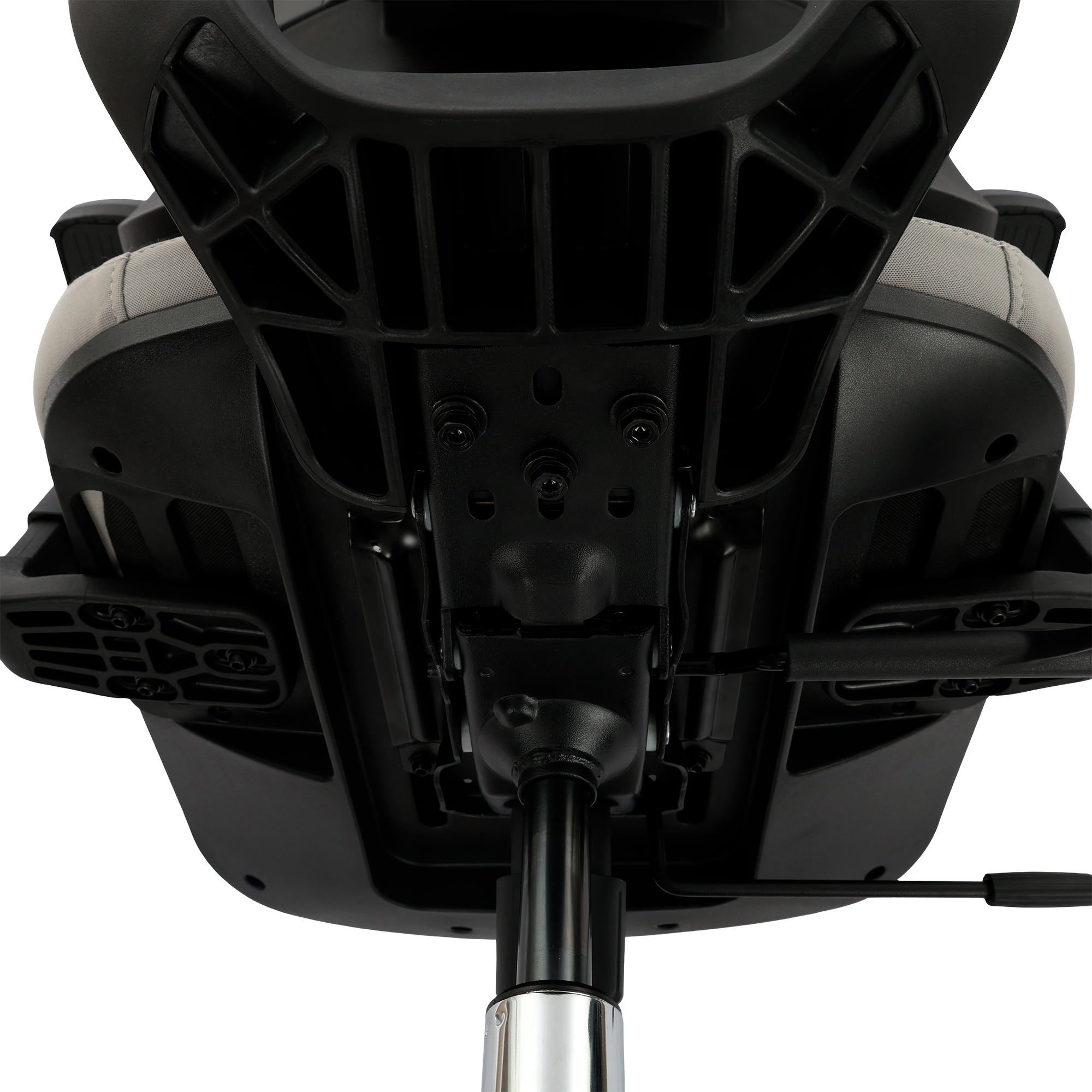 A Clarity Lite Cinza conta com mecanismo relax com trava em quatro posições, permitindo reclinar o encosto em até 130°. A função balanço de 10° e o controle de intensidade da inclinação possibilitam alternar entre foco e relaxamento de forma natural, sem comprometer o suporte postural.