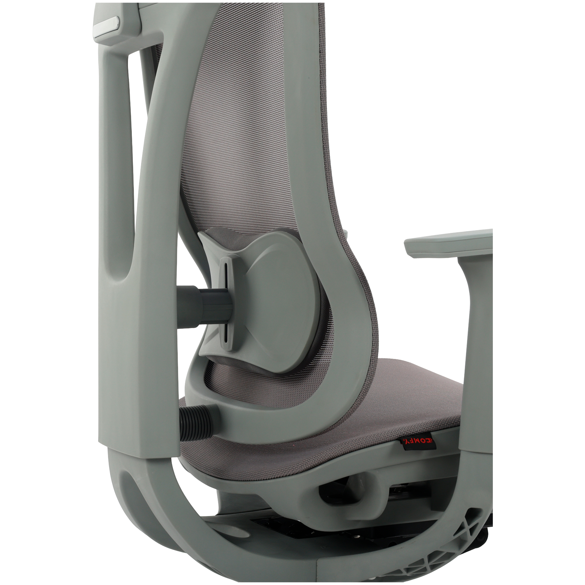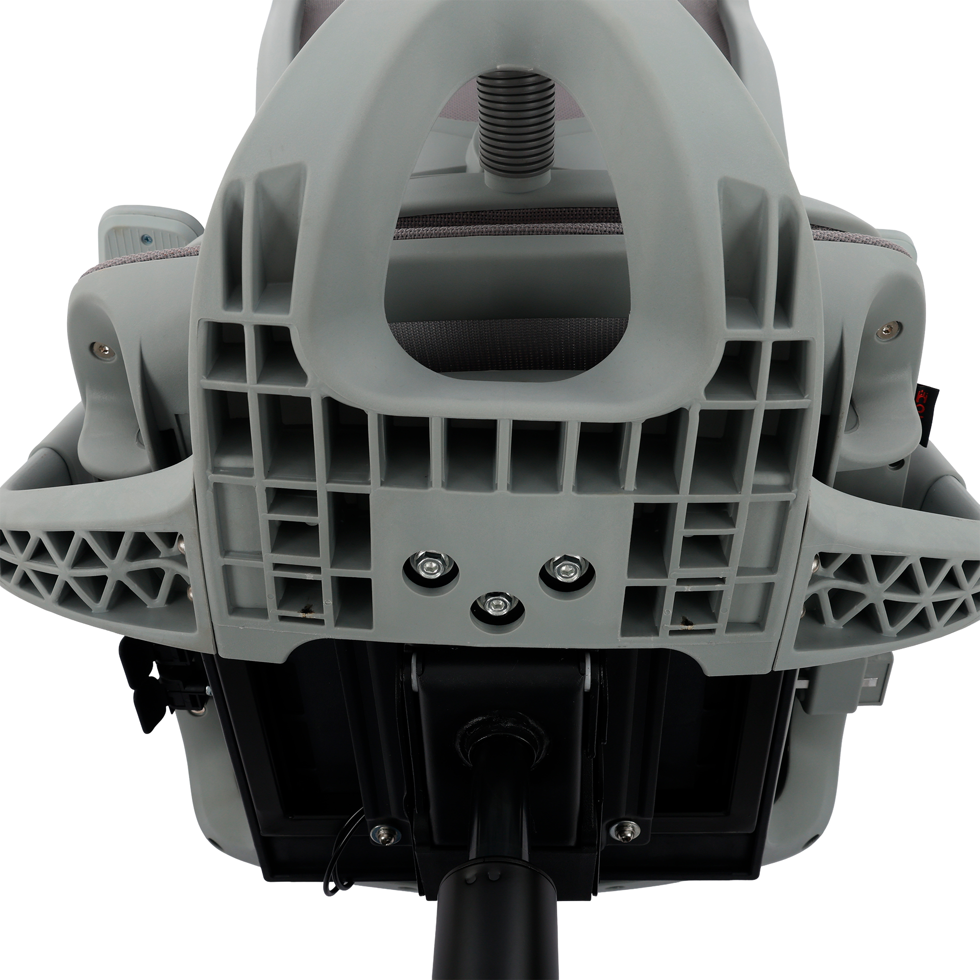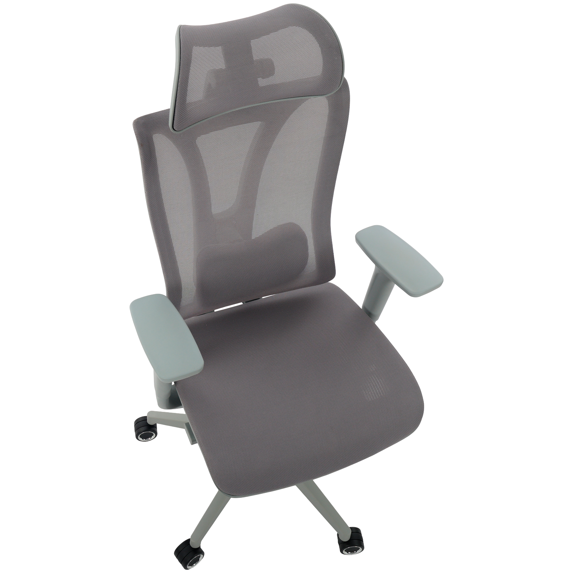 O encosto em tela Mesh cinza proporciona ventilação constante, mantendo o corpo fresco e evitando o acúmulo de calor.