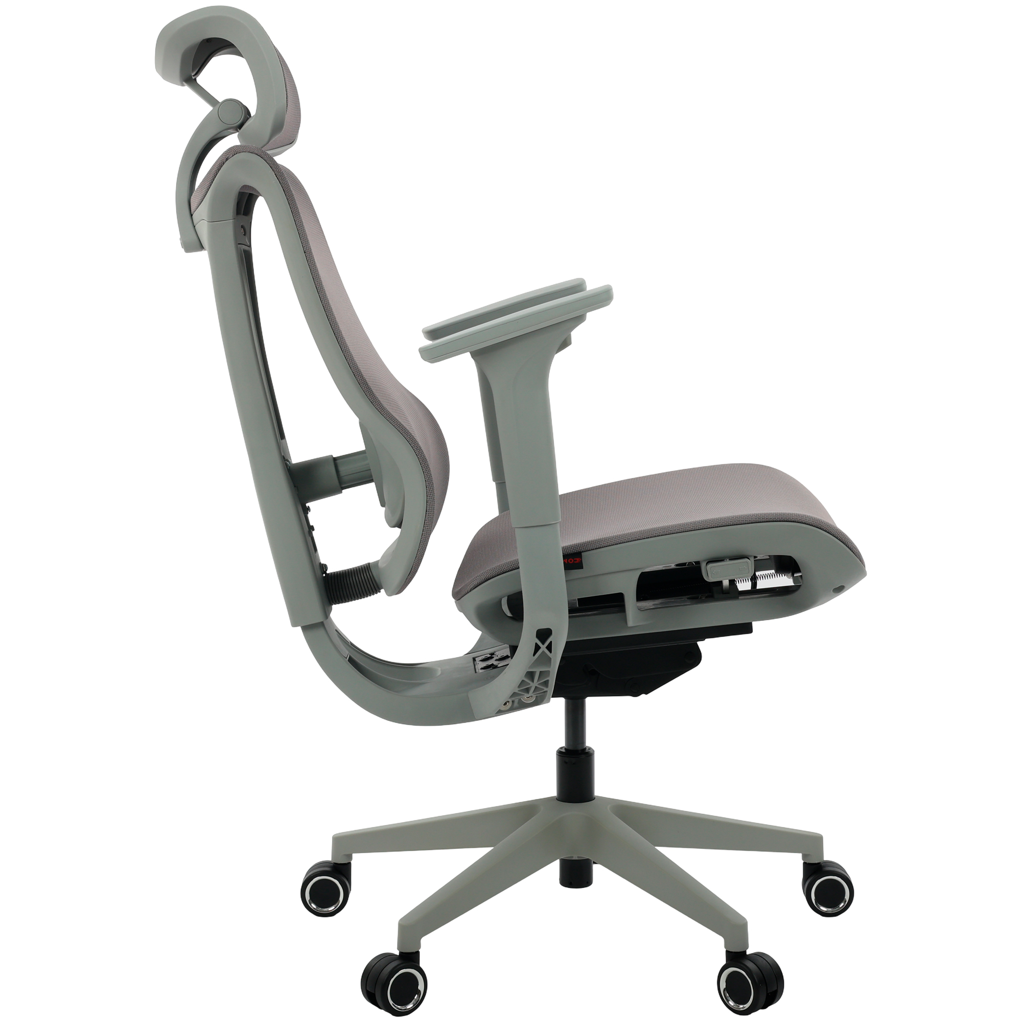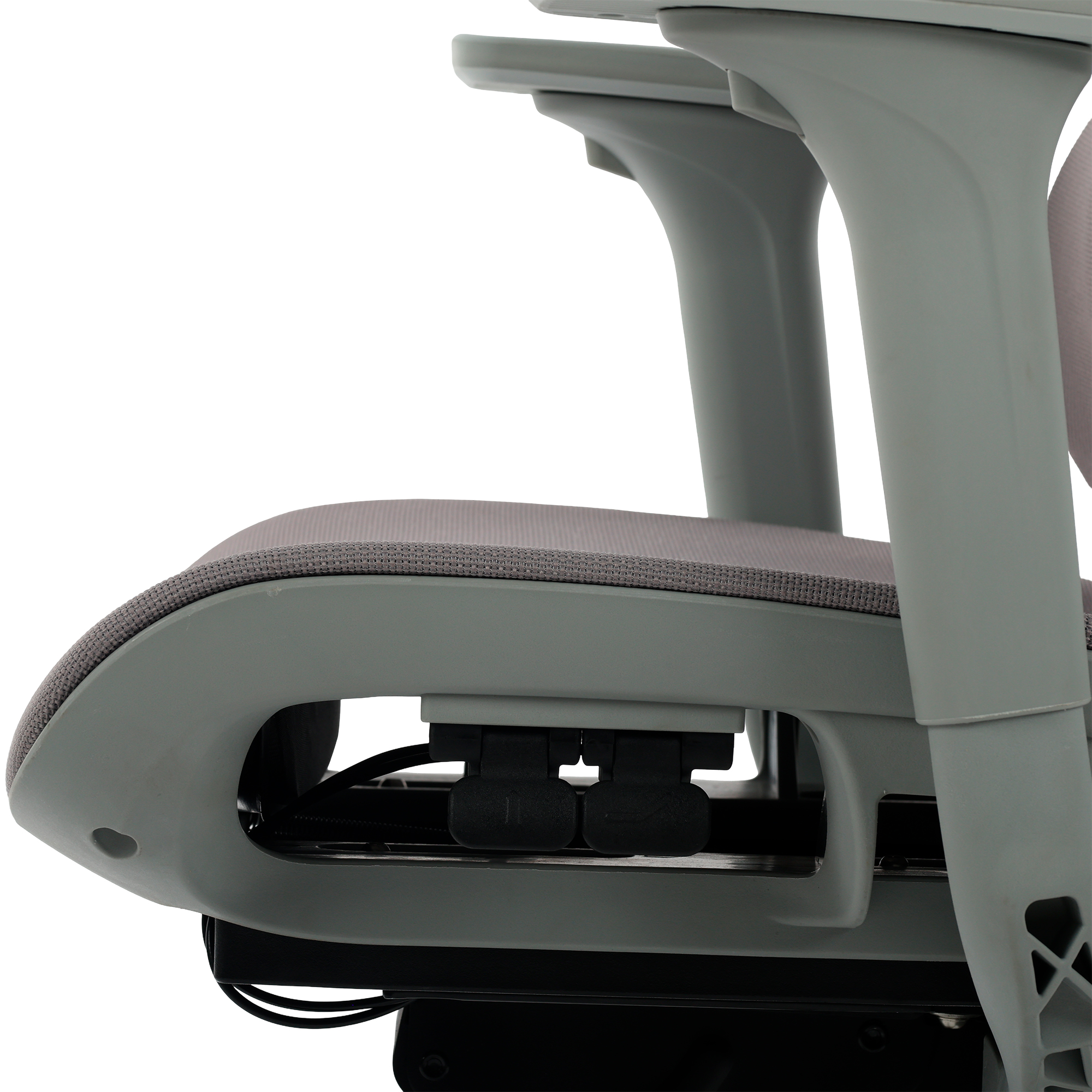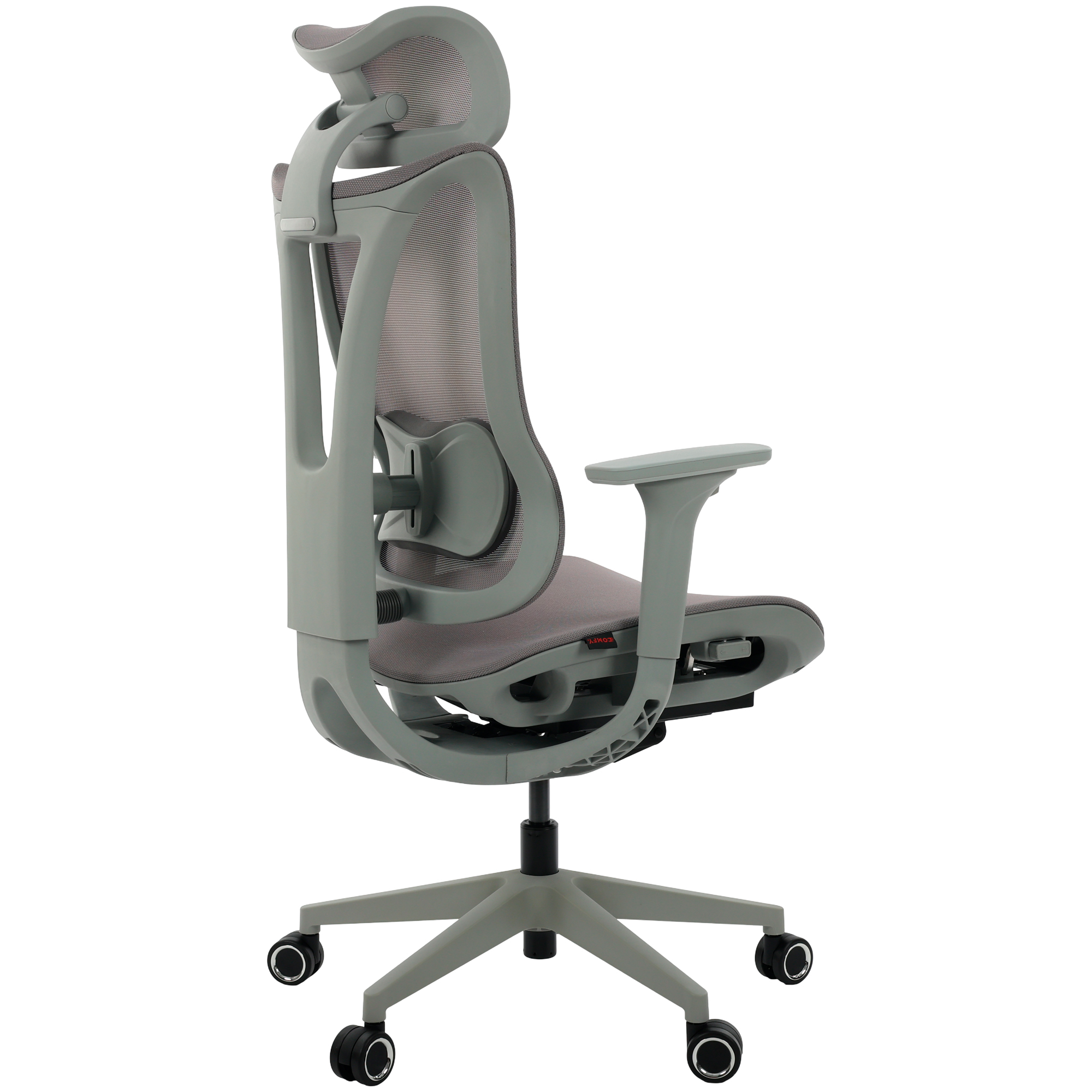 O encosto em tela Mesh cinza proporciona ventilação constante, mantendo o corpo fresco e evitando o acúmulo de calor.