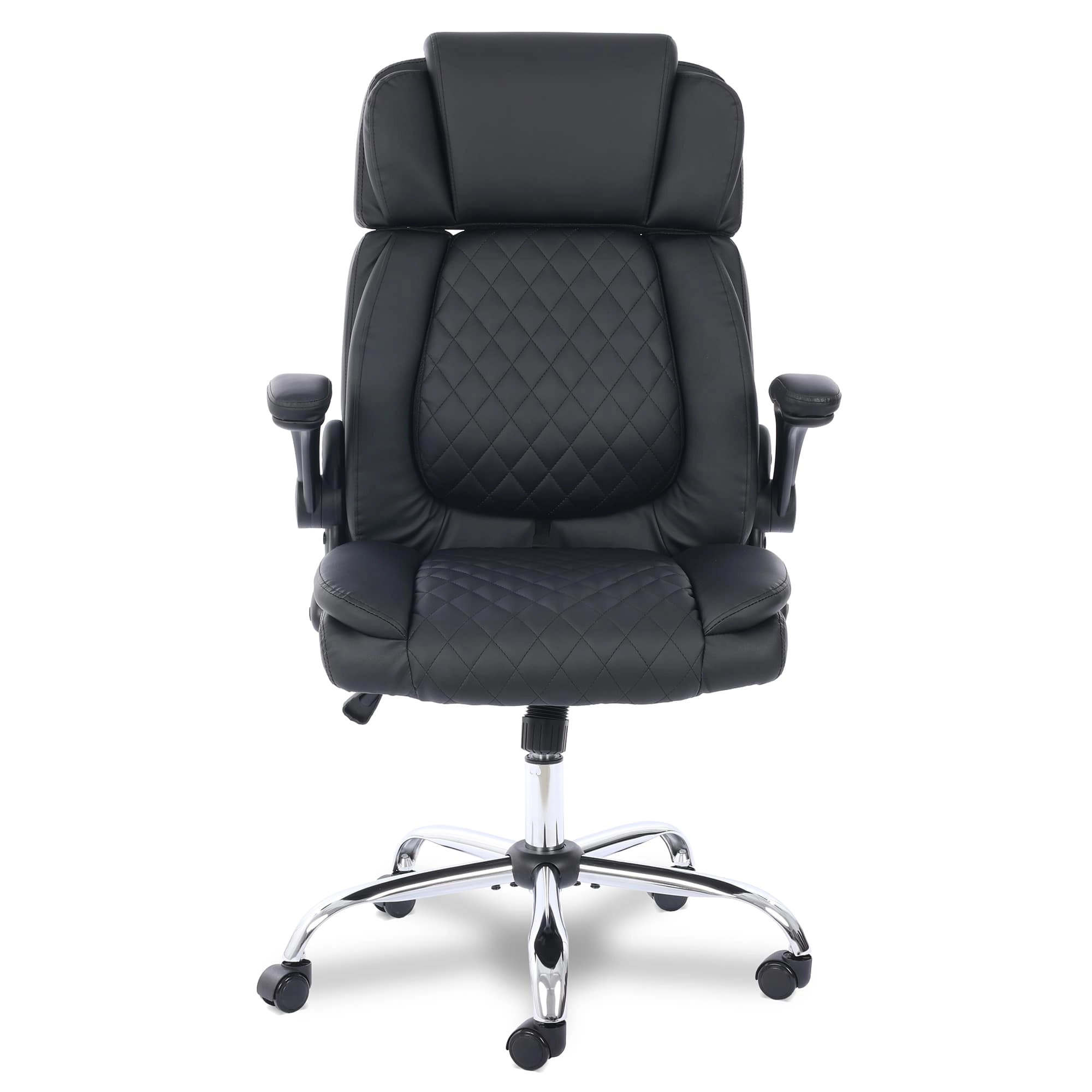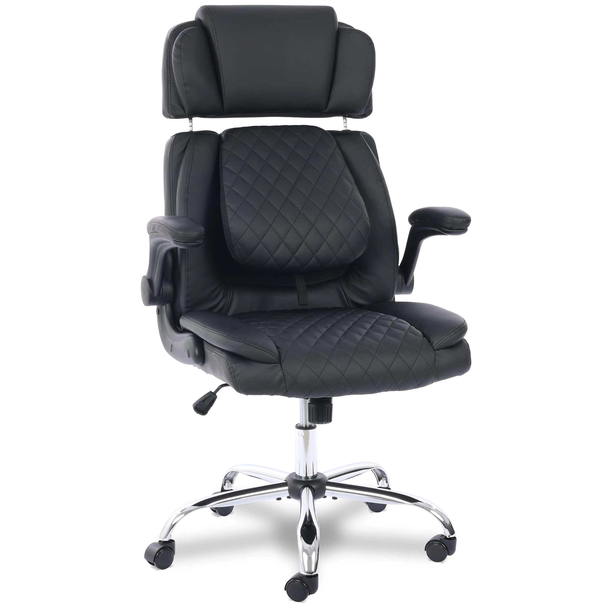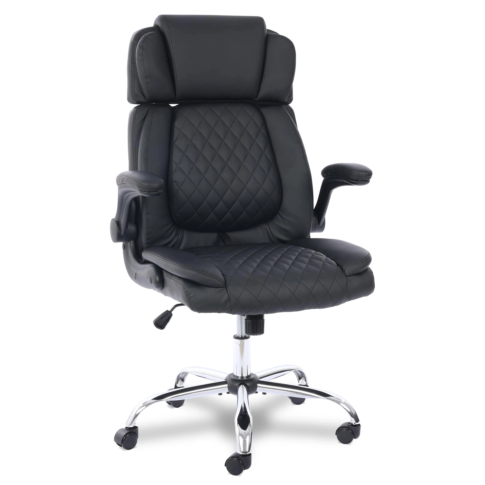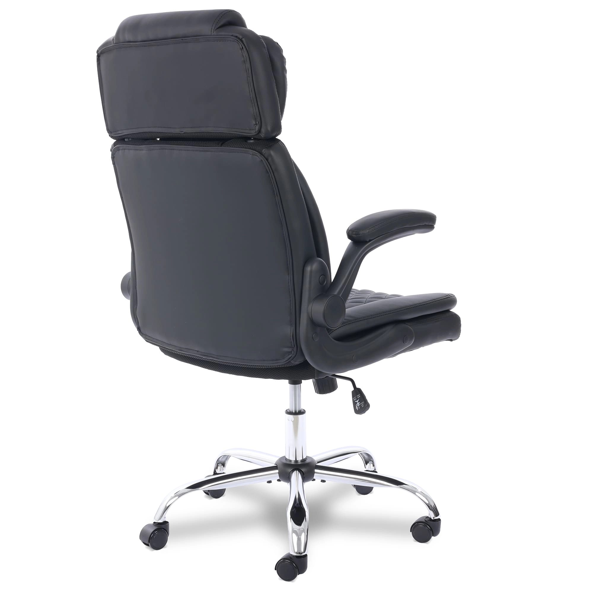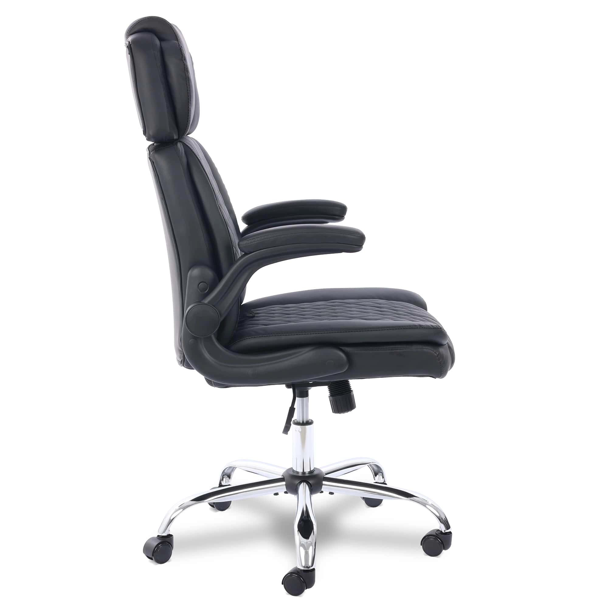 O acabamento preto estofado em couro sintético (PU) dá um toque de sofisticação que combina com qualquer ambiente. Não é só beleza: o revestimento é resistente e fácil de limpar, enquanto a base cromada em metal garante durabilidade e um visual moderno. Com braços retráteis e detalhes pensados, essa cadeira é um destaque que tem funcionalidade e funcionalidade sem esforço. Explore todos os produtos incríveis da Comfy!