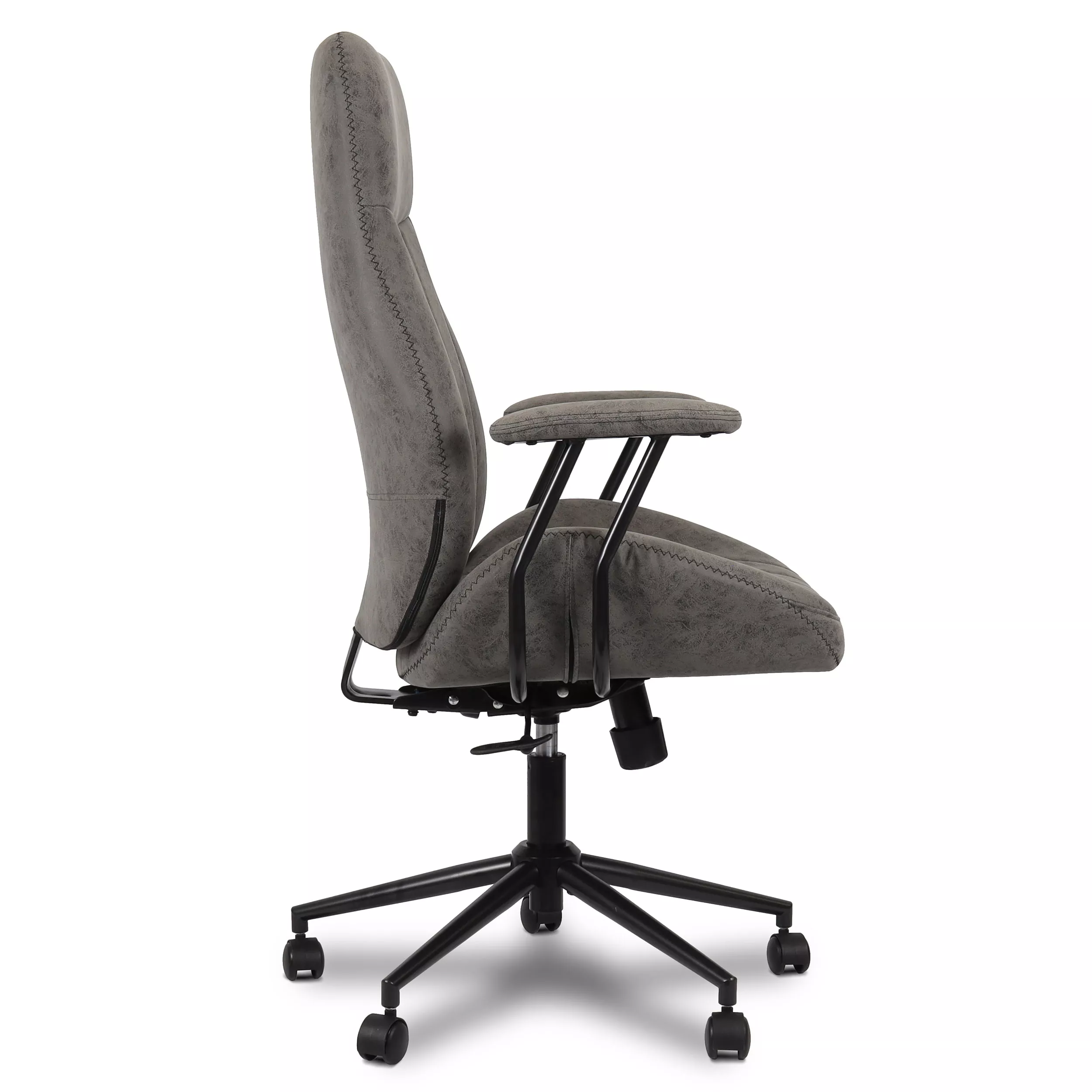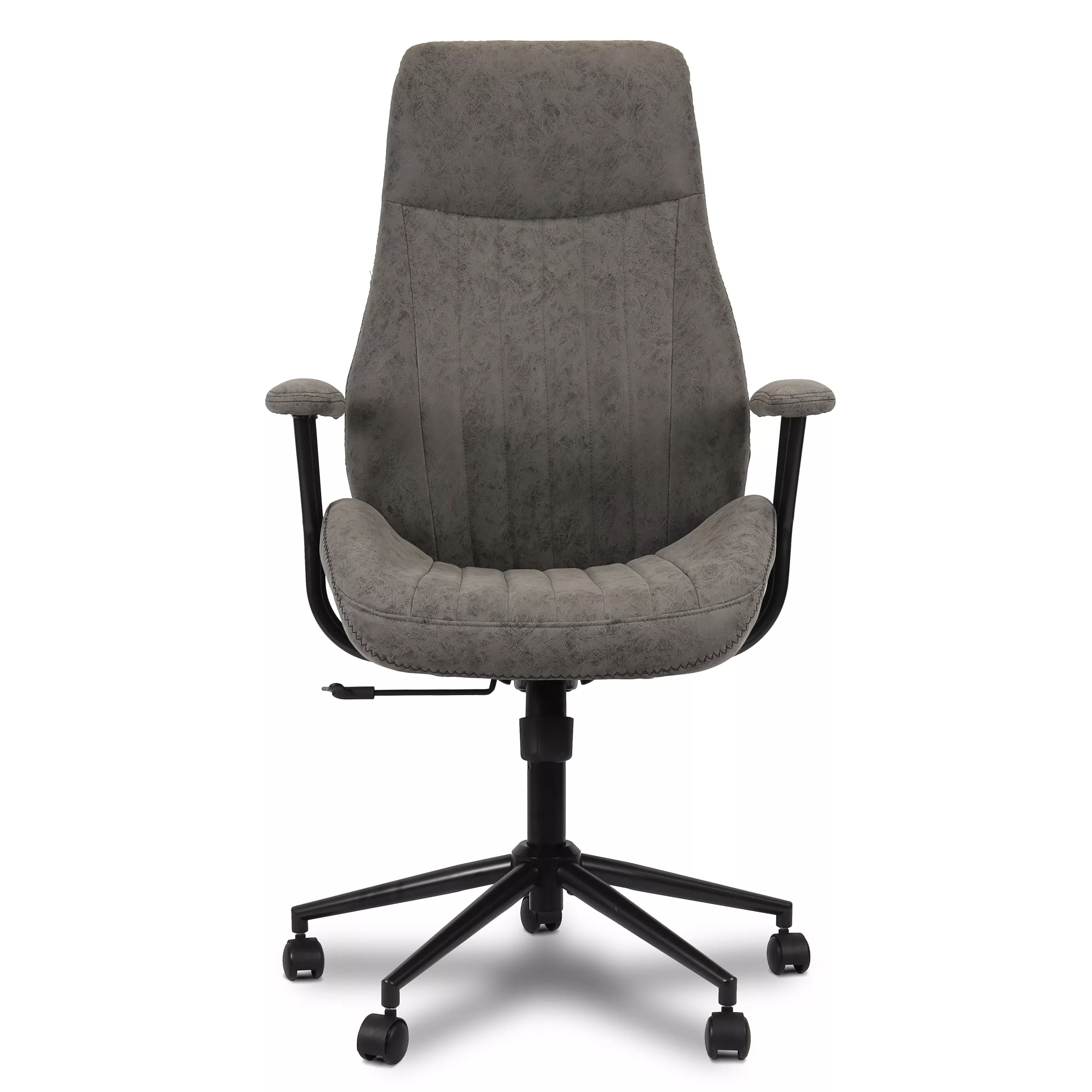 Essa cadeira de escritório cinza tem braços fixos e ajuste de altura para que você possa posicionar a sua cadeira da melhor maneira para acomodar o seu corpo. Além disso, as cadeiras com apoio para braços fixos podem durar mais tempo e requerem menos manutenção.
