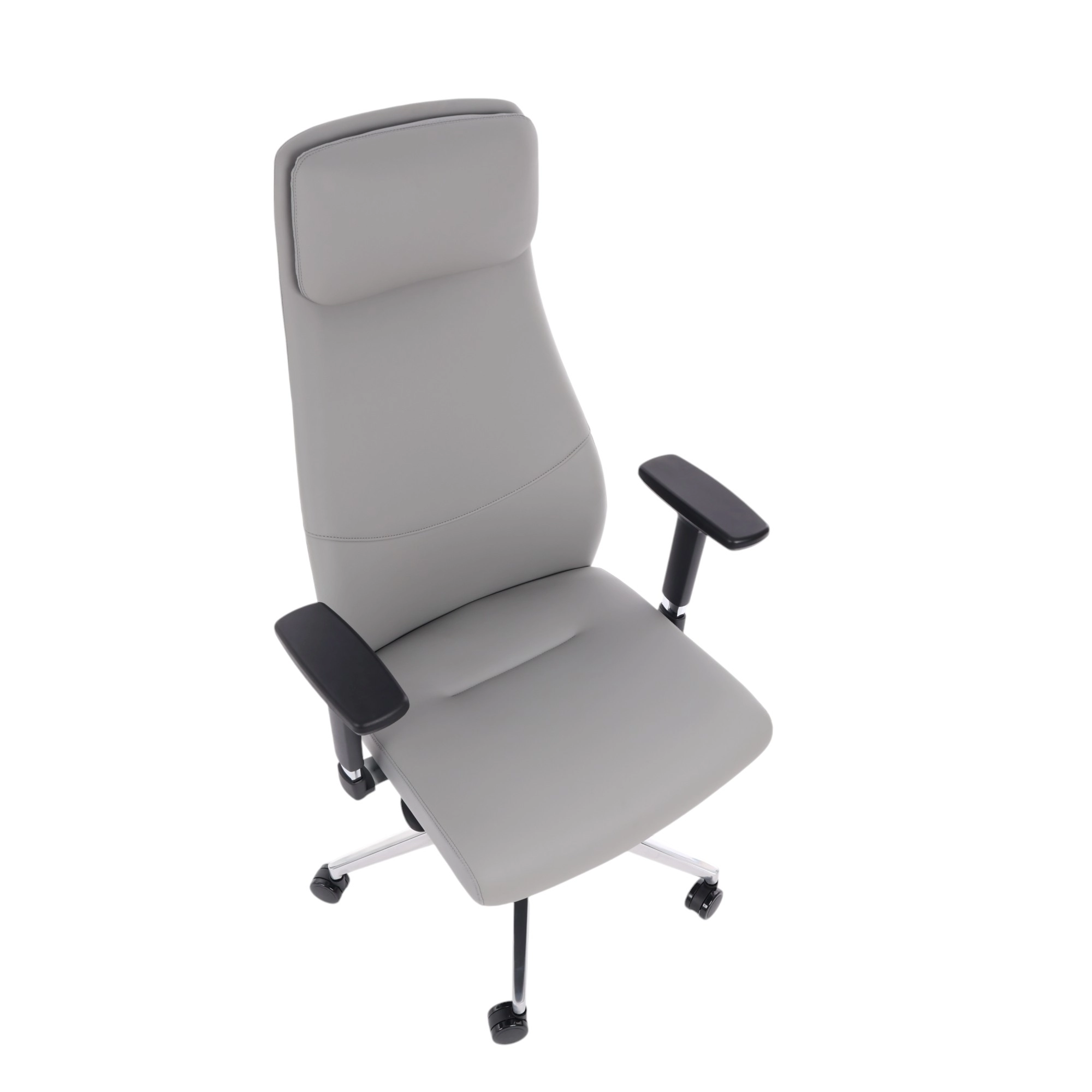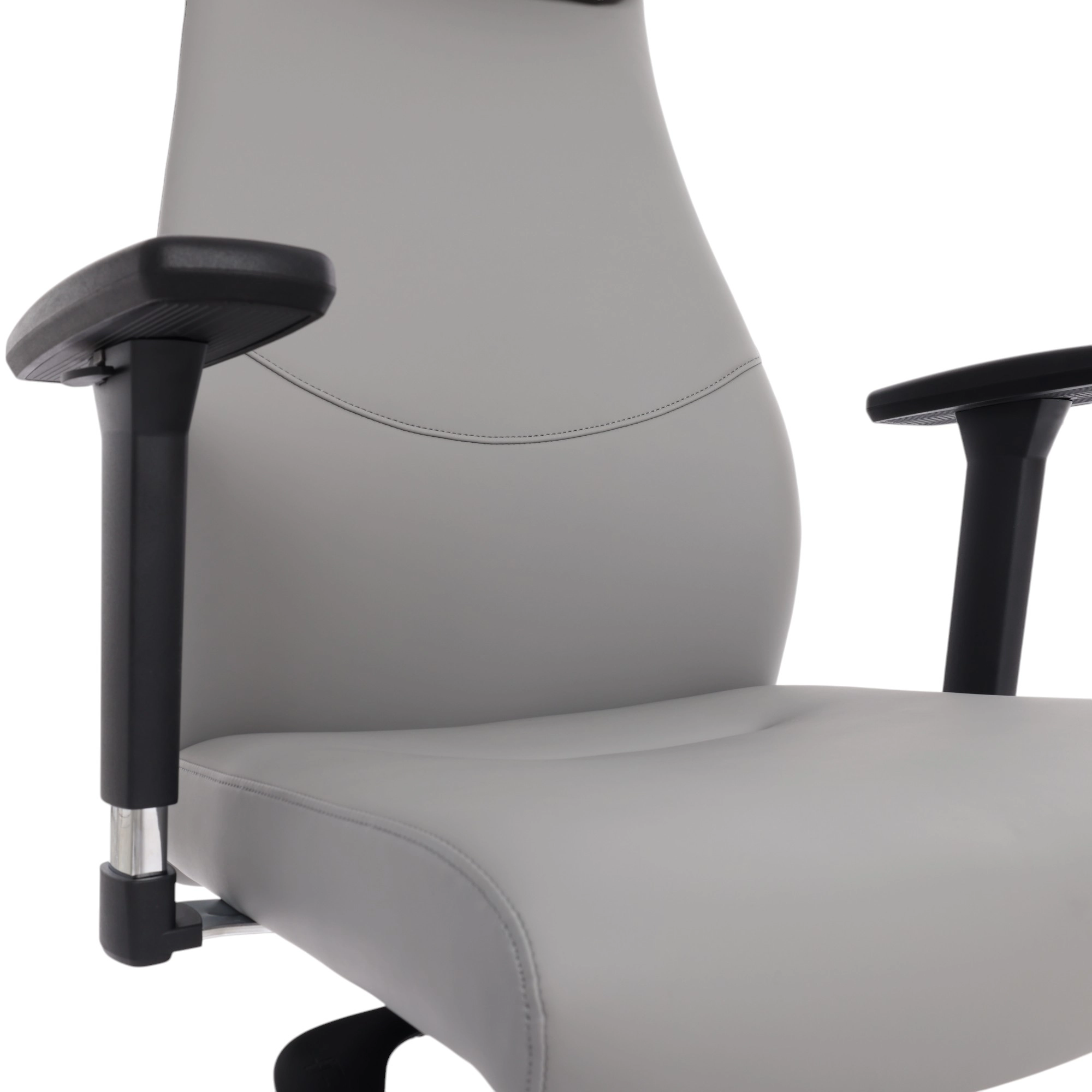 Cadeira de Escritório Comfy Luxe PVC Cinza, Base Alumínio, Braço 3D e Relax Avançado