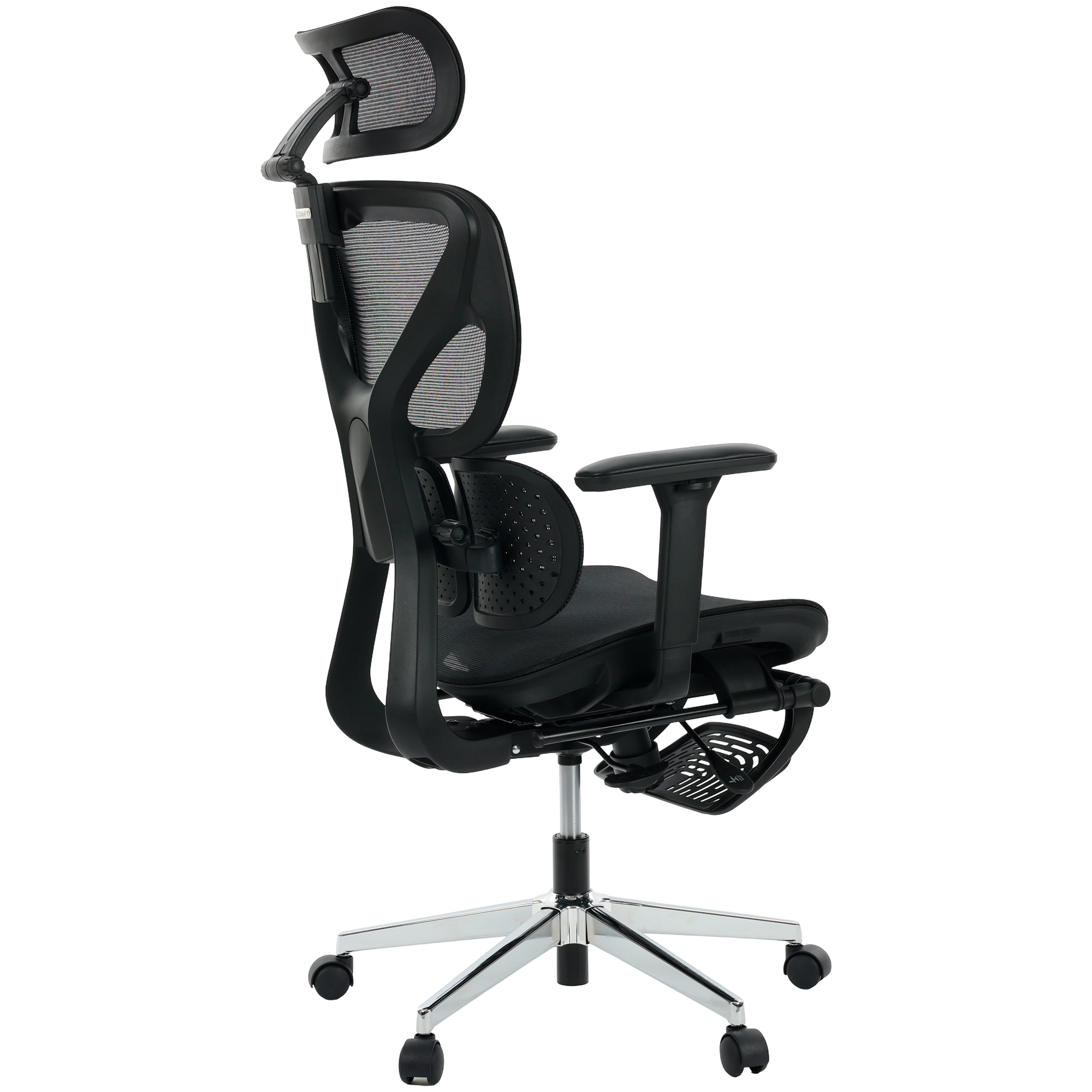 Um dos grandes diferenciais da Comfy® Orion é o apoio de cabeça 3D, que permite ajustes de altura, inclinação e profundidade, garantindo conforto completo para a região cervical. Essa liberdade de personalização proporciona apoio ideal em diferentes posições de trabalho, leitura ou relaxamento.