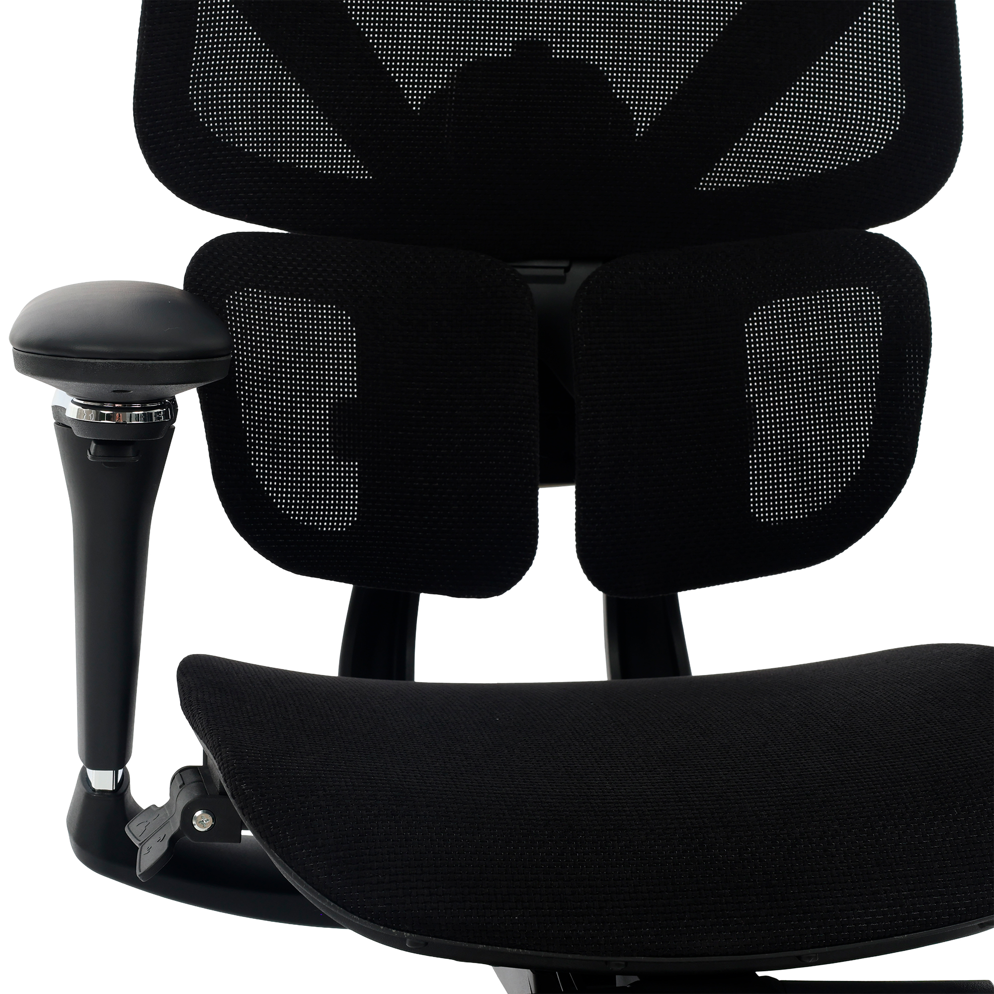 O encosto tripartido com sistema adaptativo move-se de forma sincronizada ao corpo, promovendo sustentação inteligente em cada ponto da coluna.