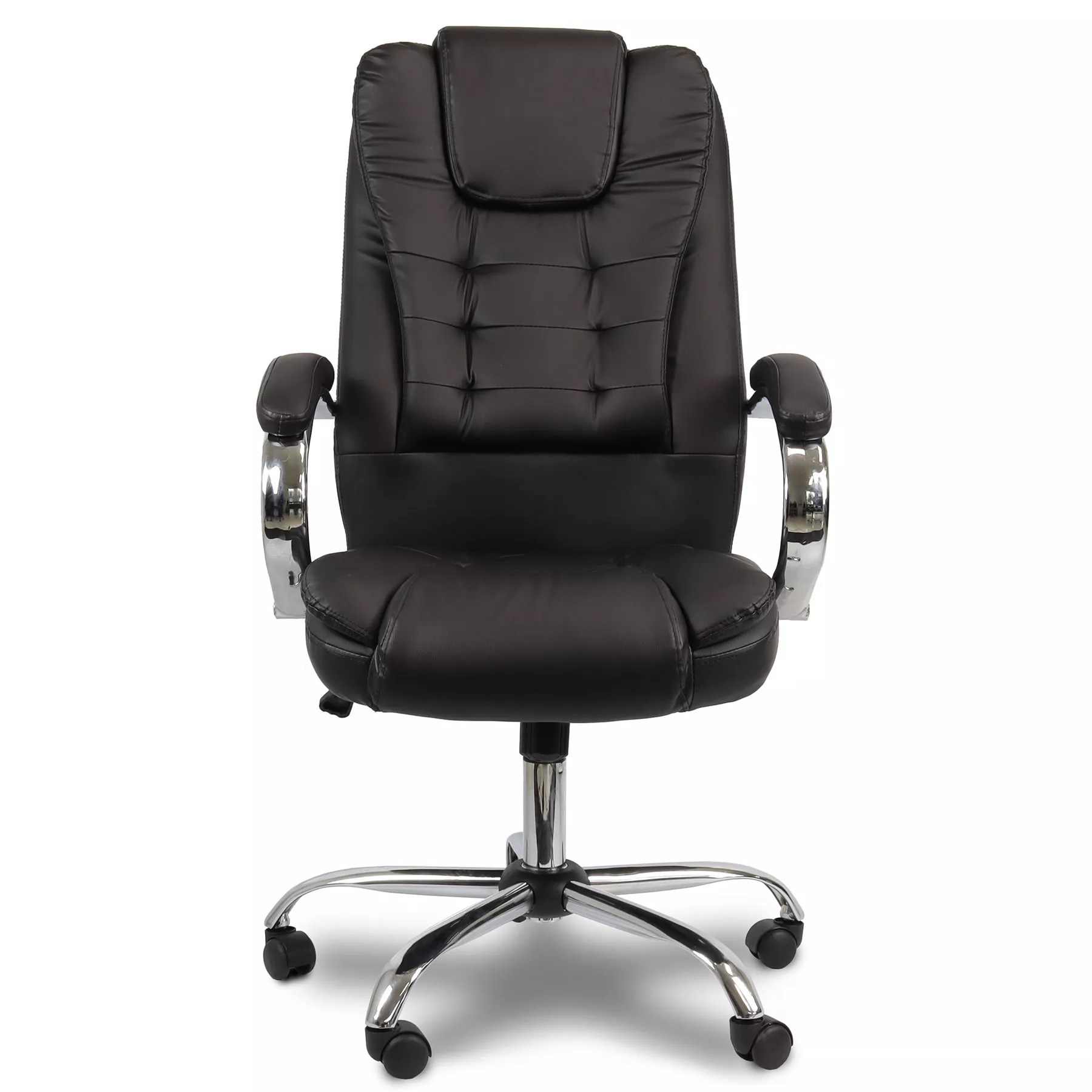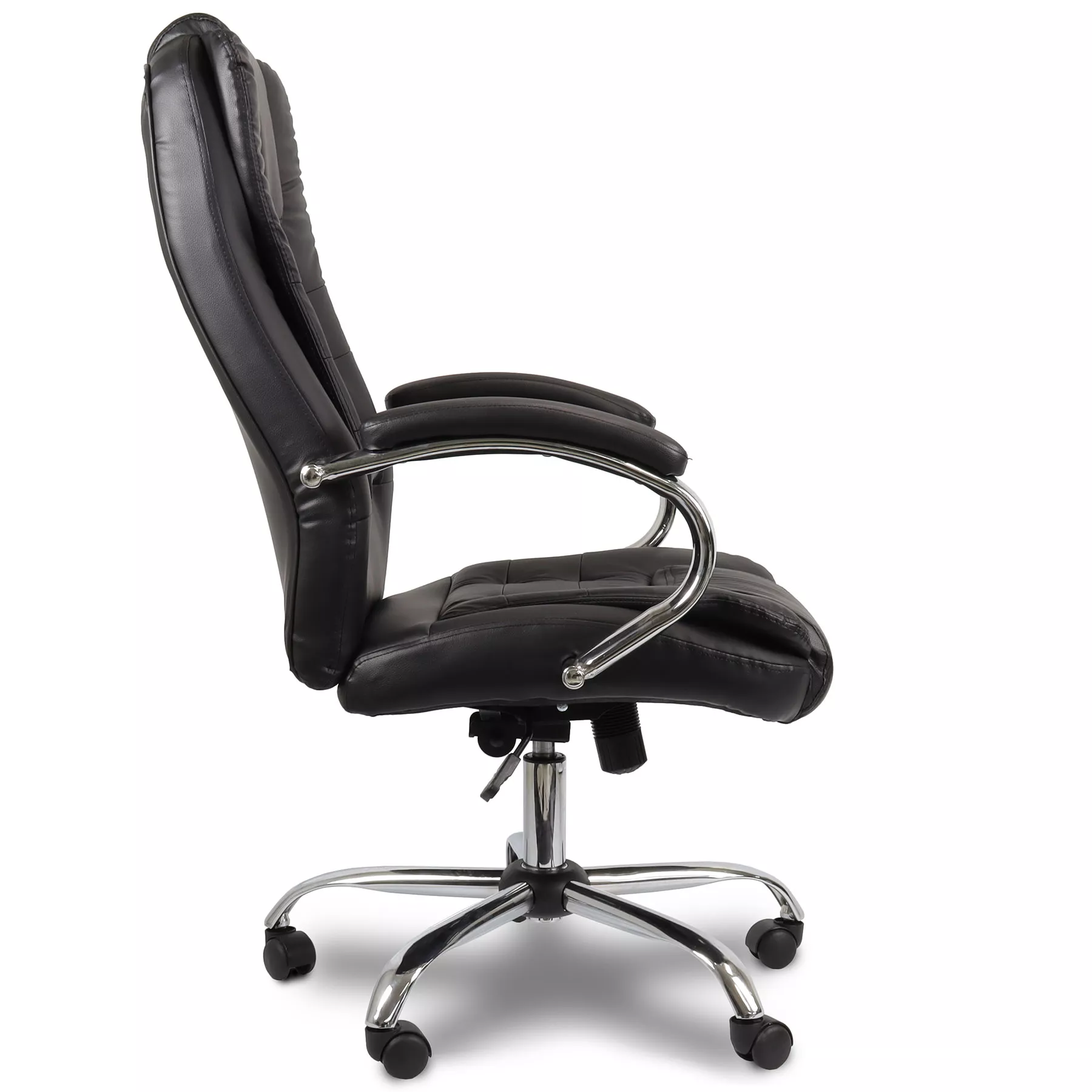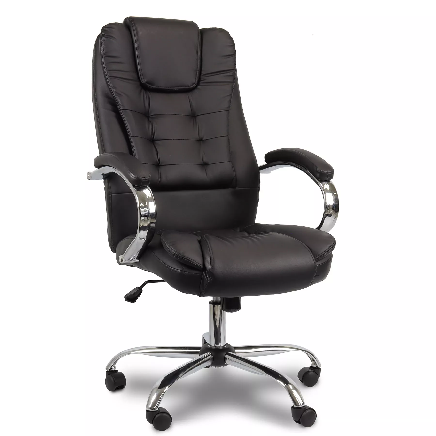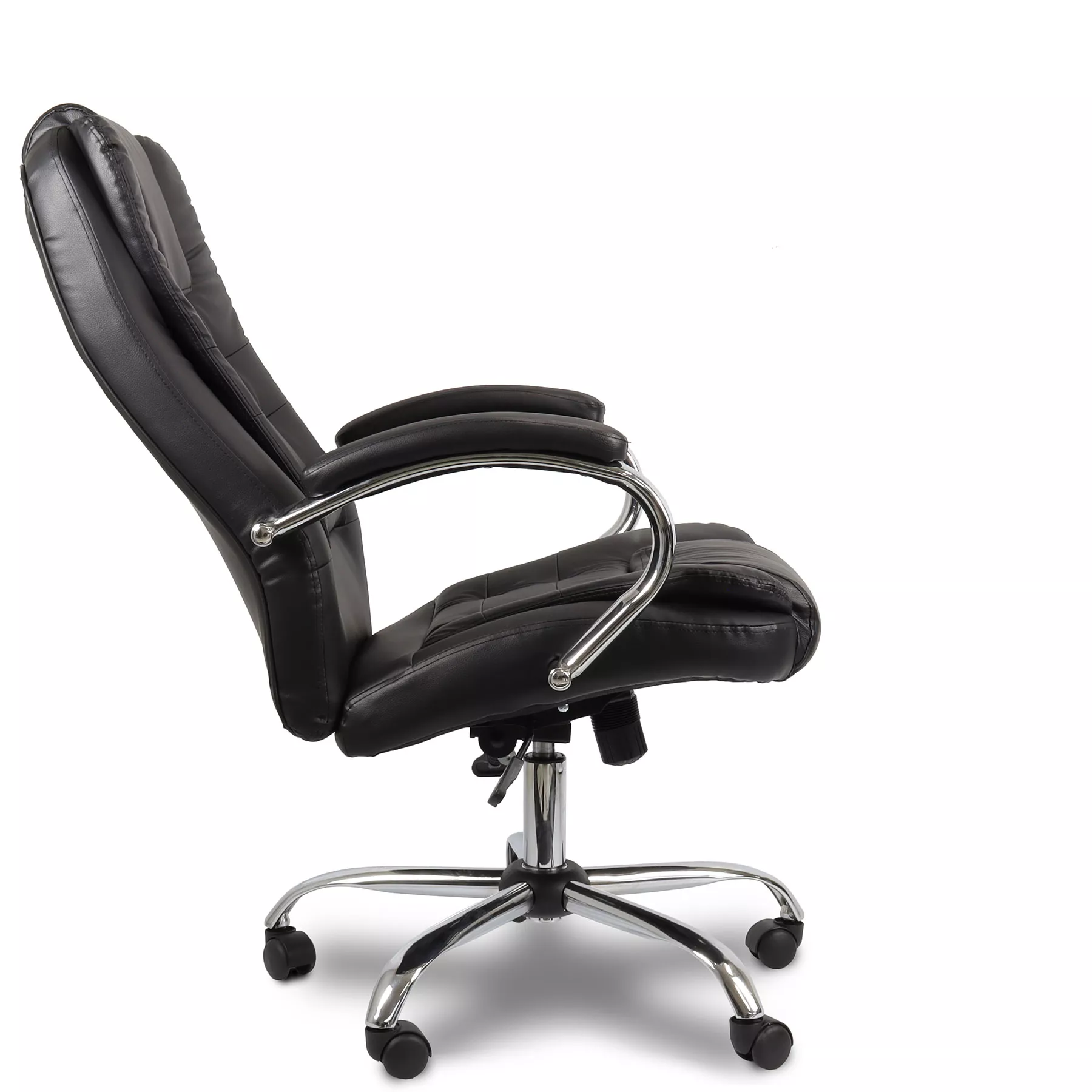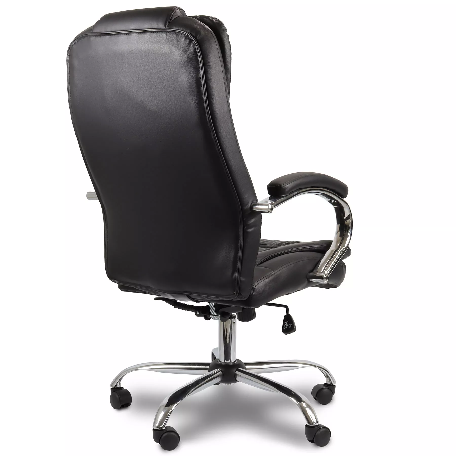 Base cromada em formato aranha com rodízios em nylon, e pistão de elevação cromado a gás de alta qualidade.