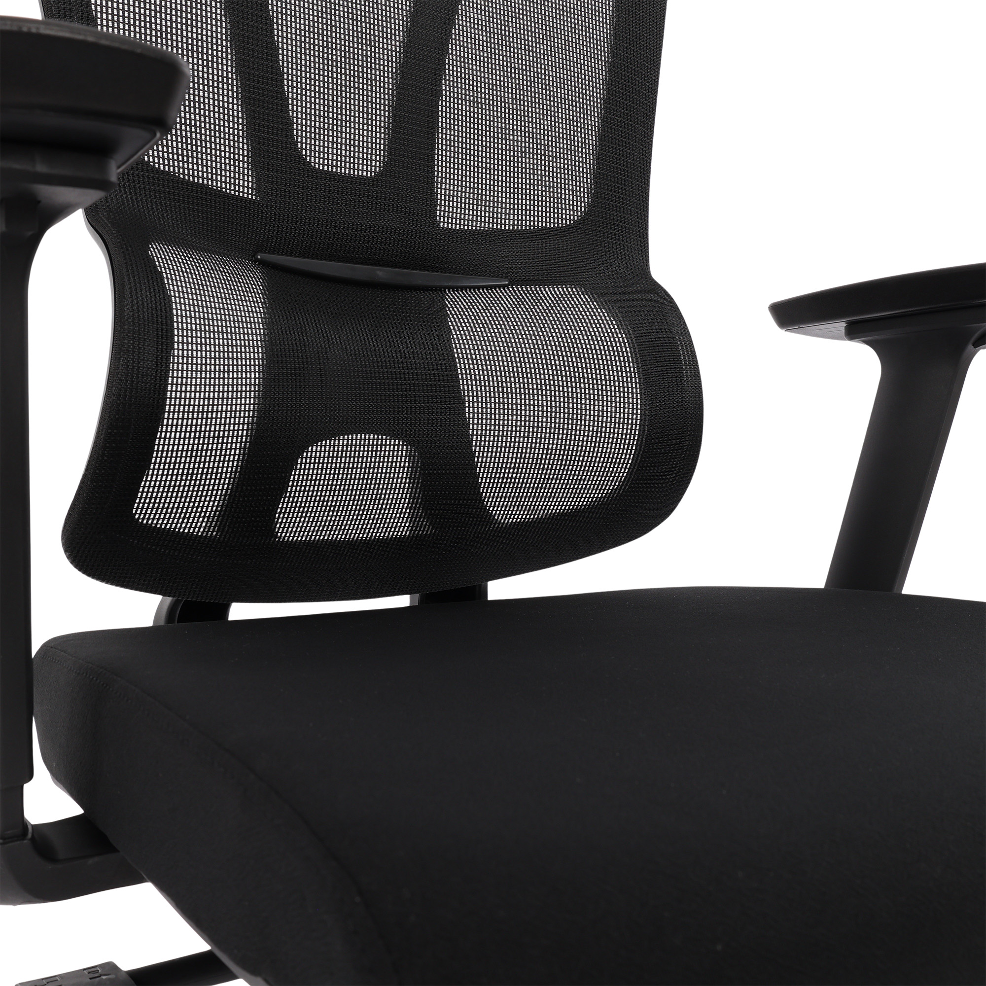 Para um suporte completo à postura, a Flexy Duna conta com um apoio lombar com curvatura ergonômica, projetado para seguir o formato natural da coluna e reduzir a tensão na região lombar. Além disso, o apoio de cabeça 2D ajustável permite regular a altura e o ângulo, proporcionando suporte cervical eficiente e aliviando tensões no pescoço e ombros.