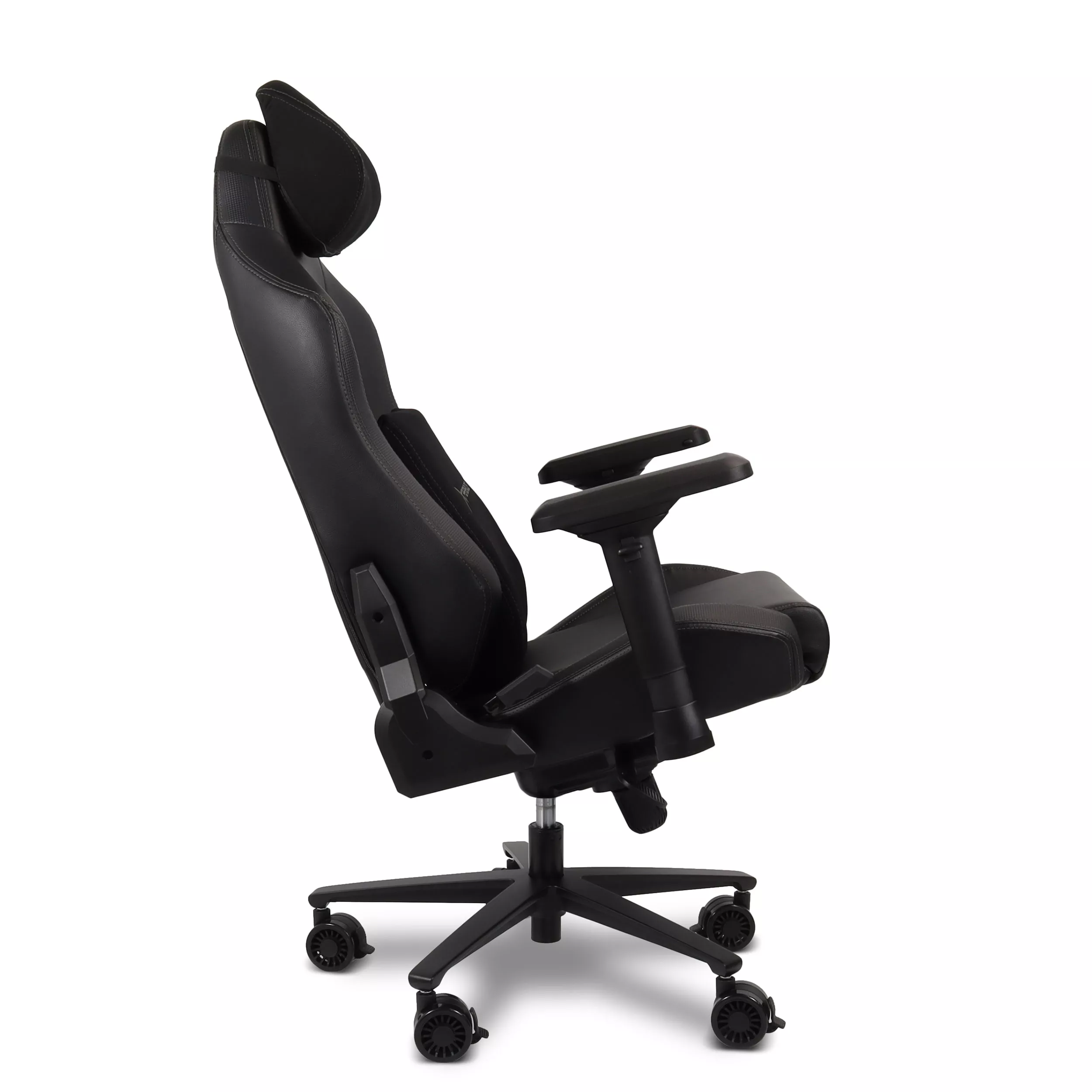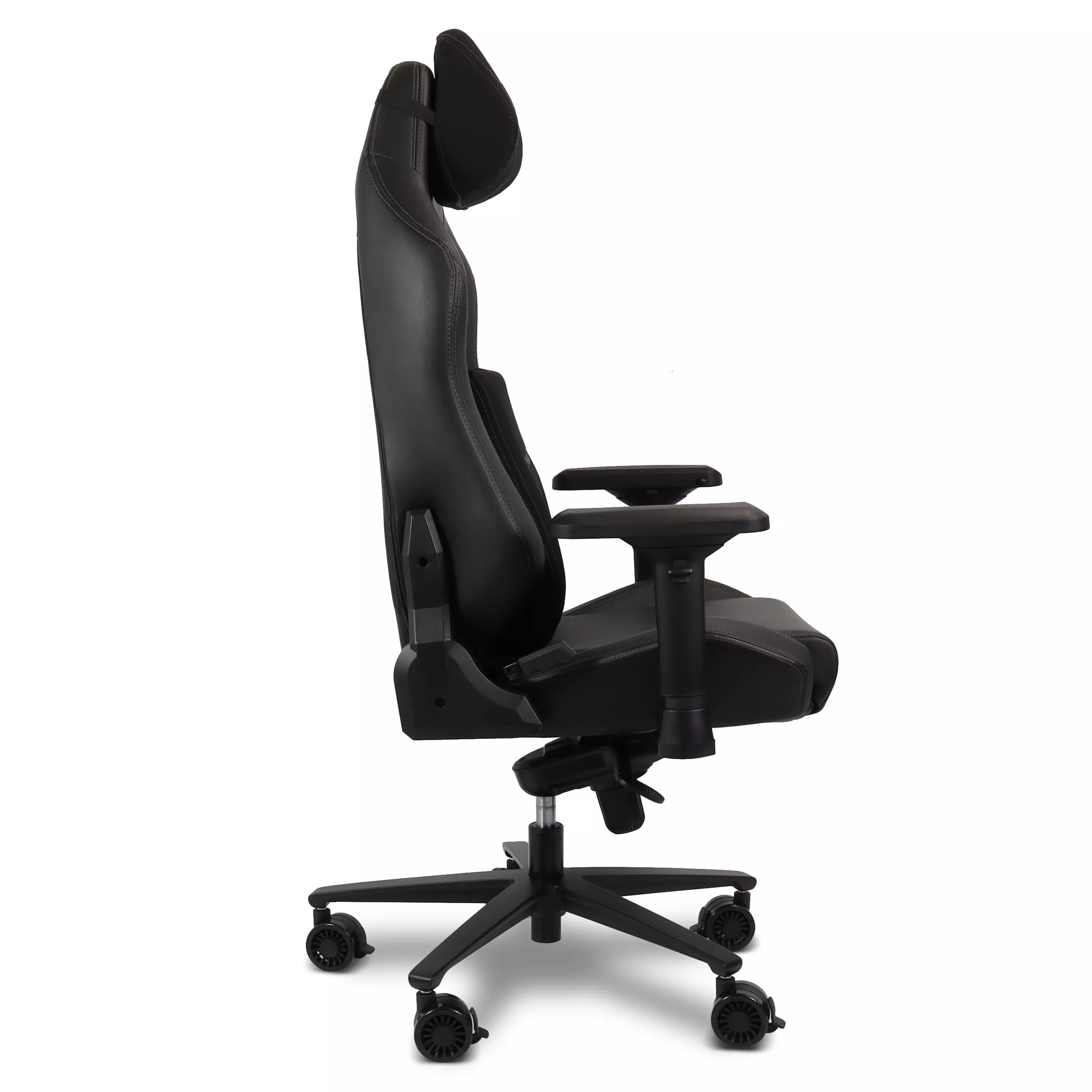 - Revestimento em Couro Sintético: Acabamento preto premium, resistente e fácil de limpar, com um visual gamer marcante.