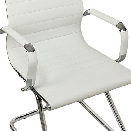 O Par de Cadeiras Visitante Comfy Nifty Branca com base fixa cromada da Comfy é a escolha ideal para ambientes que buscam aliar elegância e praticidade. Vendido pela loja Comfy, esse par de cadeiras atende perfeitamente a recepções, salas de espera e ambientes corporativos de médio tráfego. Seu design contemporâneo destaca-se pelo contraste entre o branco puro do revestimento em couro sintético (PU) e o brilho sofisticado do metal cromado, criando um visual clean e atraente que se integra facilmente a decorações claras ou escuras.